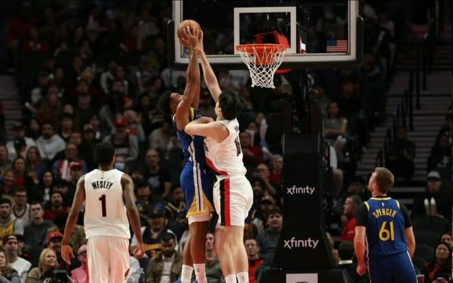 - 2025年10月25日 杨瀚森7分钟2分1板2帽 开拓者轻取勇士迎首胜 库里空砍35+6