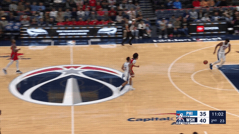 大帝的个人效率很高,但是球队一度落后奇才19分。时间耗尽的大帝只能在替补席上旁观并相信球队逆转的过程,76人在第四节最后时刻追平比分,并最终赢下加时。