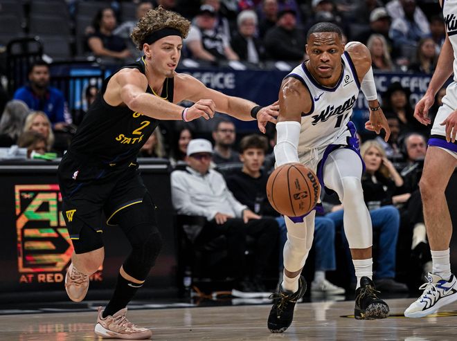 末节少爷登场后勇士已经扳平分差,威少关键补篮,随后送出三分助攻再度领先到8分,终场前8秒威少逼的勇士失误,国王手握5分领先还有球权直接锁定胜局。