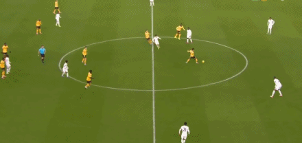 第5分钟,梦幻开局!吉滕斯送出短传,桑托斯远射破门,狼队0-1切尔西