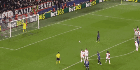 第32分钟,场上僵局被打破:普罗沃德禁区内手球送点,萨卡主罚命中,阿森纳1-0领先,萨卡成为阿森纳欧冠改制后首位连续四场客场破门的球员。