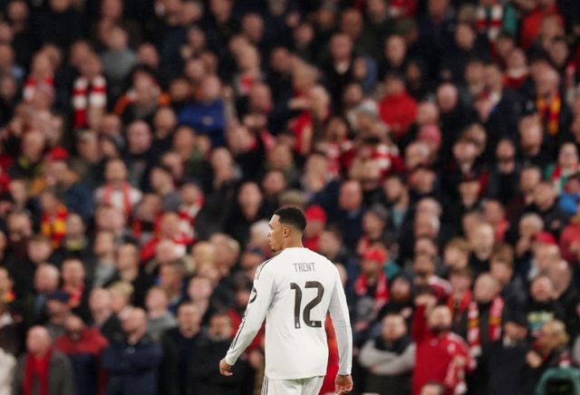 阿诺德还是那个阿诺德,但已不是红衣少年。安菲尔德球场响起巨大嘘声,6万利物浦球迷,尽情发泄对阿诺德的愤怒之情。镜头给到1名利物浦球迷,他指着利物浦队徽亲吻,这是对“叛将”的嘲讽。